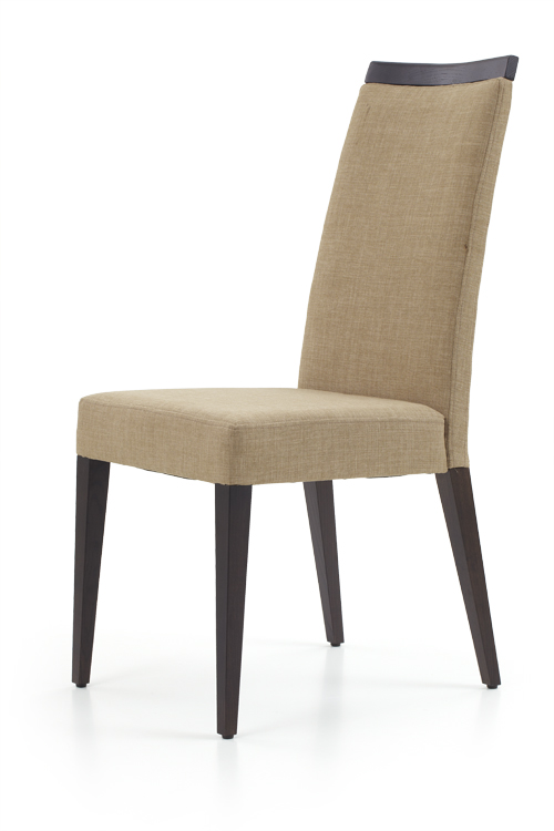 Καρέκλα ξύλινη με κάθισμα και πλάτη ύφασμα. Ξύλινη λεπτομέρεια στο πάνω μέρος της πλάτης Δυνατότητα επιλογής υφασμάτος, τεχνόδερμα και αποχρώσεις ξύλου PREVIOUSNEXT