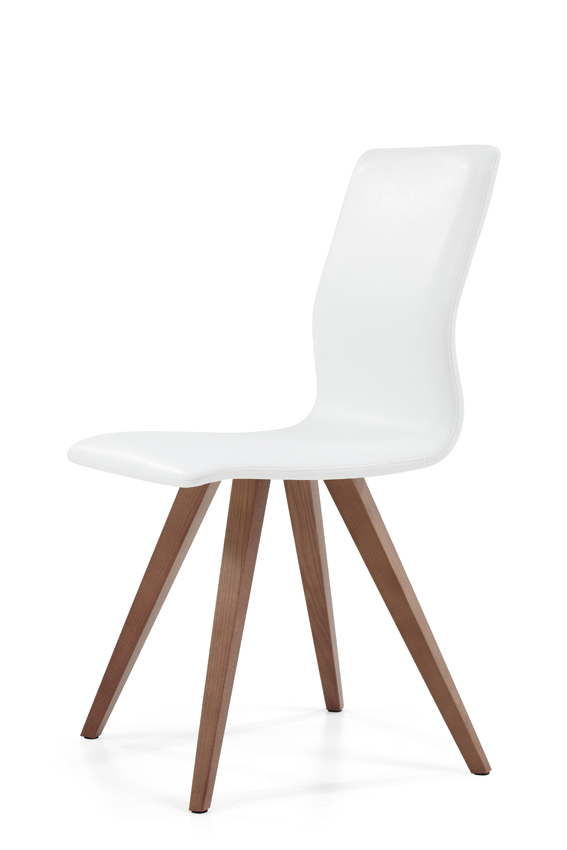 Καρέκλα τραπεζαρίας με ξύλινη βάση και λευκό τεχνόδερμα. Μεγάλη ποικιλία σε τεχνοδέρματα, υφασμάτα και αποχρώσεις ξύλου. PREVIOUSNEXT