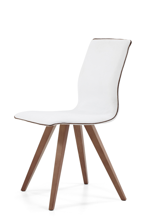 Καρέκλα τραπεζαρίας με ξύλινη βάση , λευκό ύφασμα και διακοσμητικό φυτίλι.